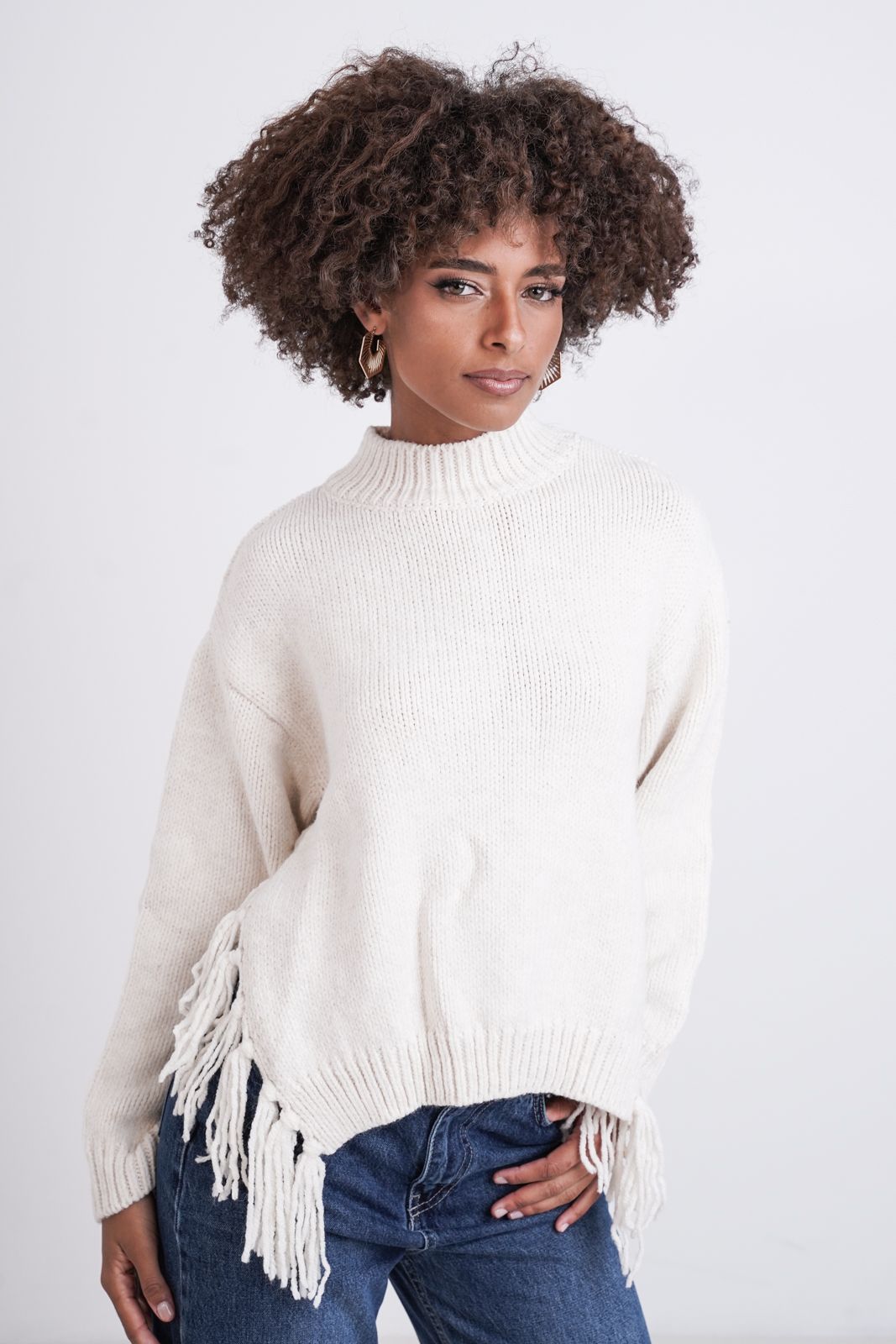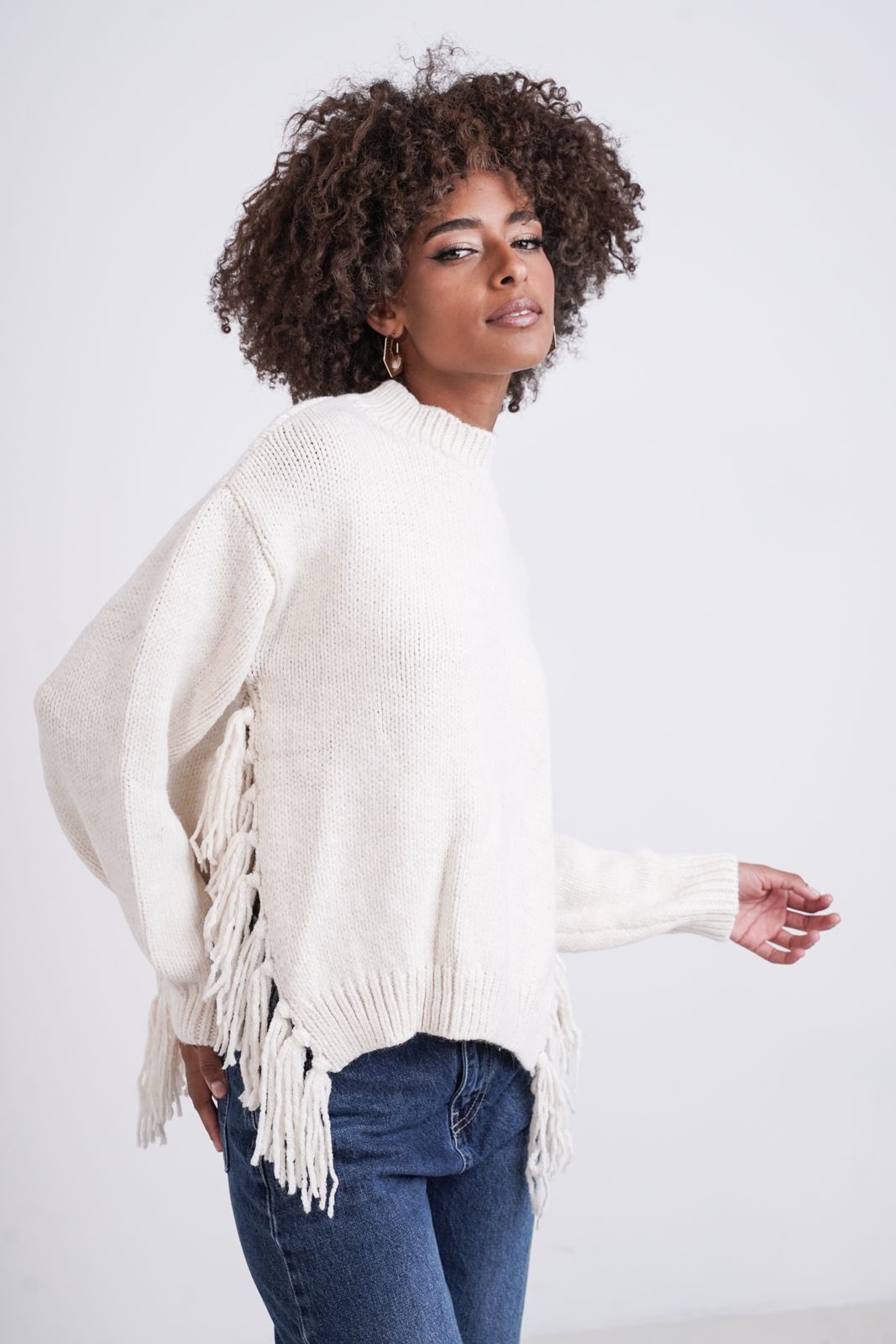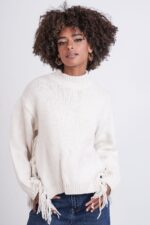 Πουλόβερ πλεκτό με χοντρή πλέξη και κρόσια στο πλάι.